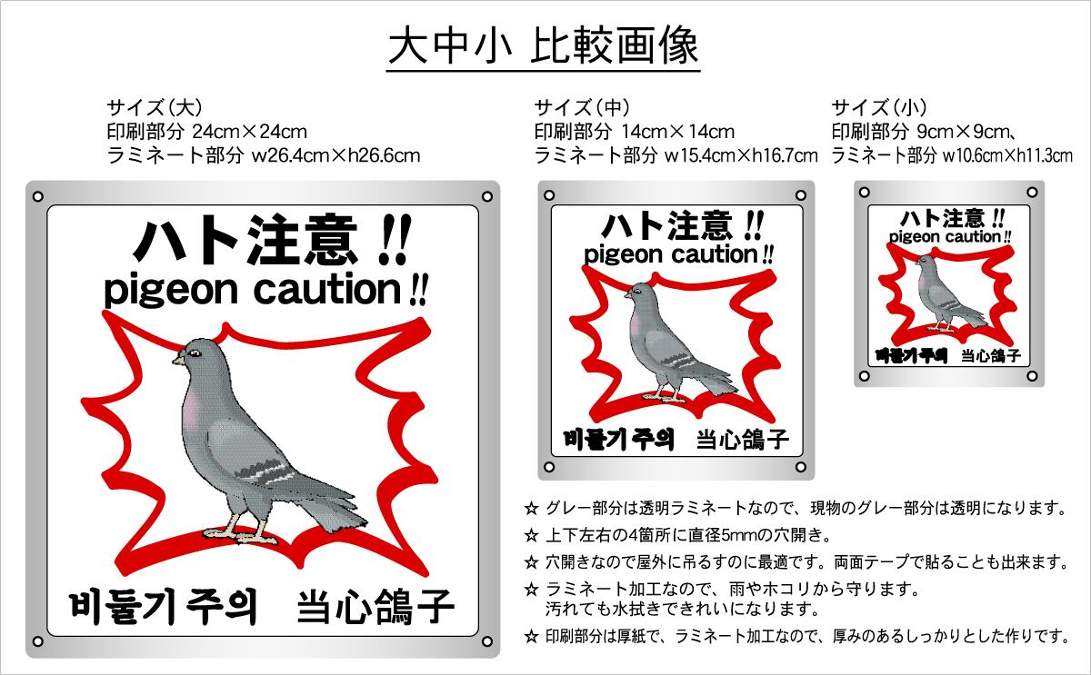 ボード・害獣・害虫・10.6×12cm・ハト注意!!