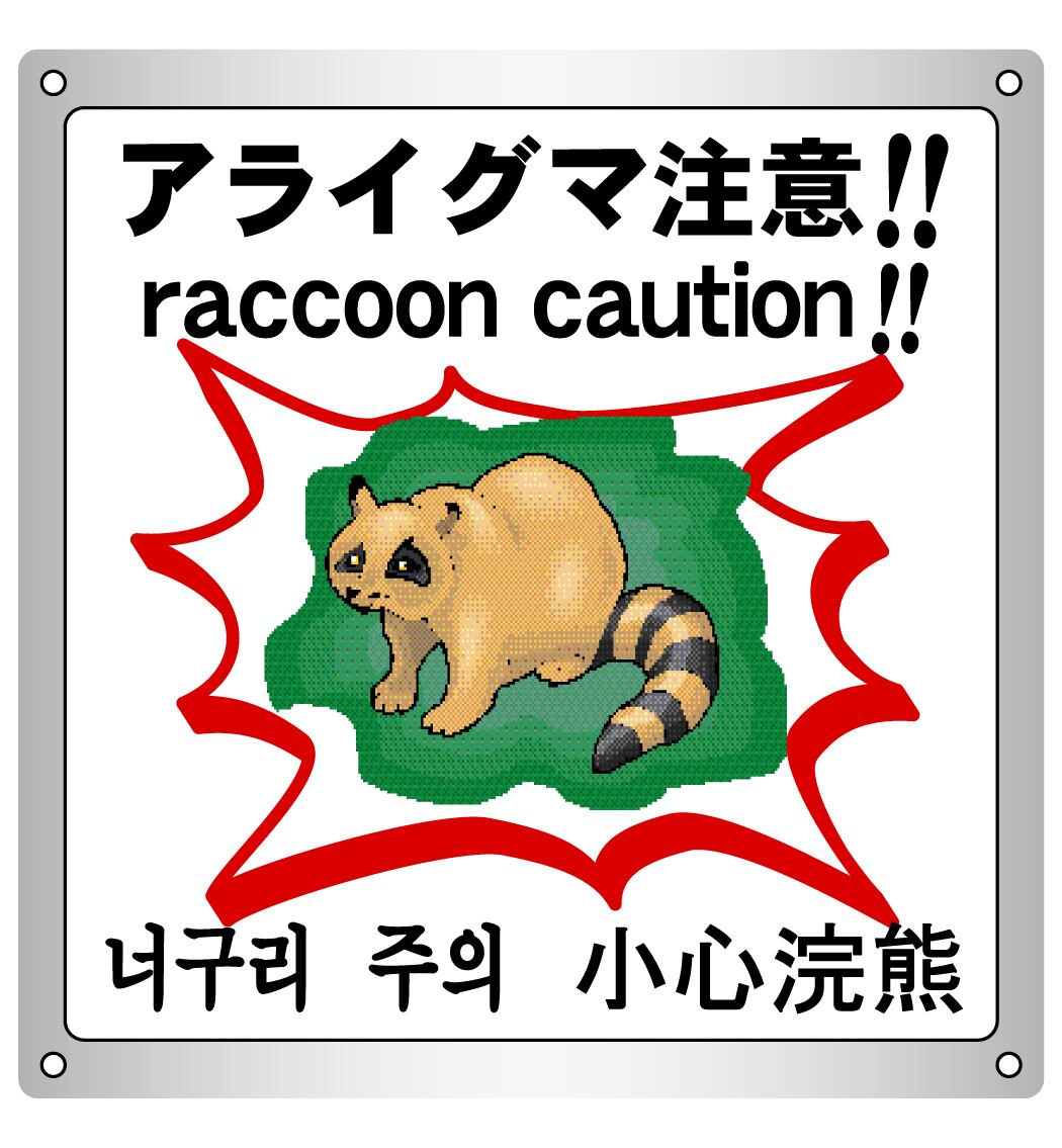 ボード・害獣・害虫・15.4×17cm・アライグマ注意!!
