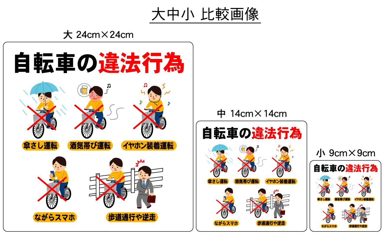 ステッカー・警告6・9×9cm・自転車の違法行為