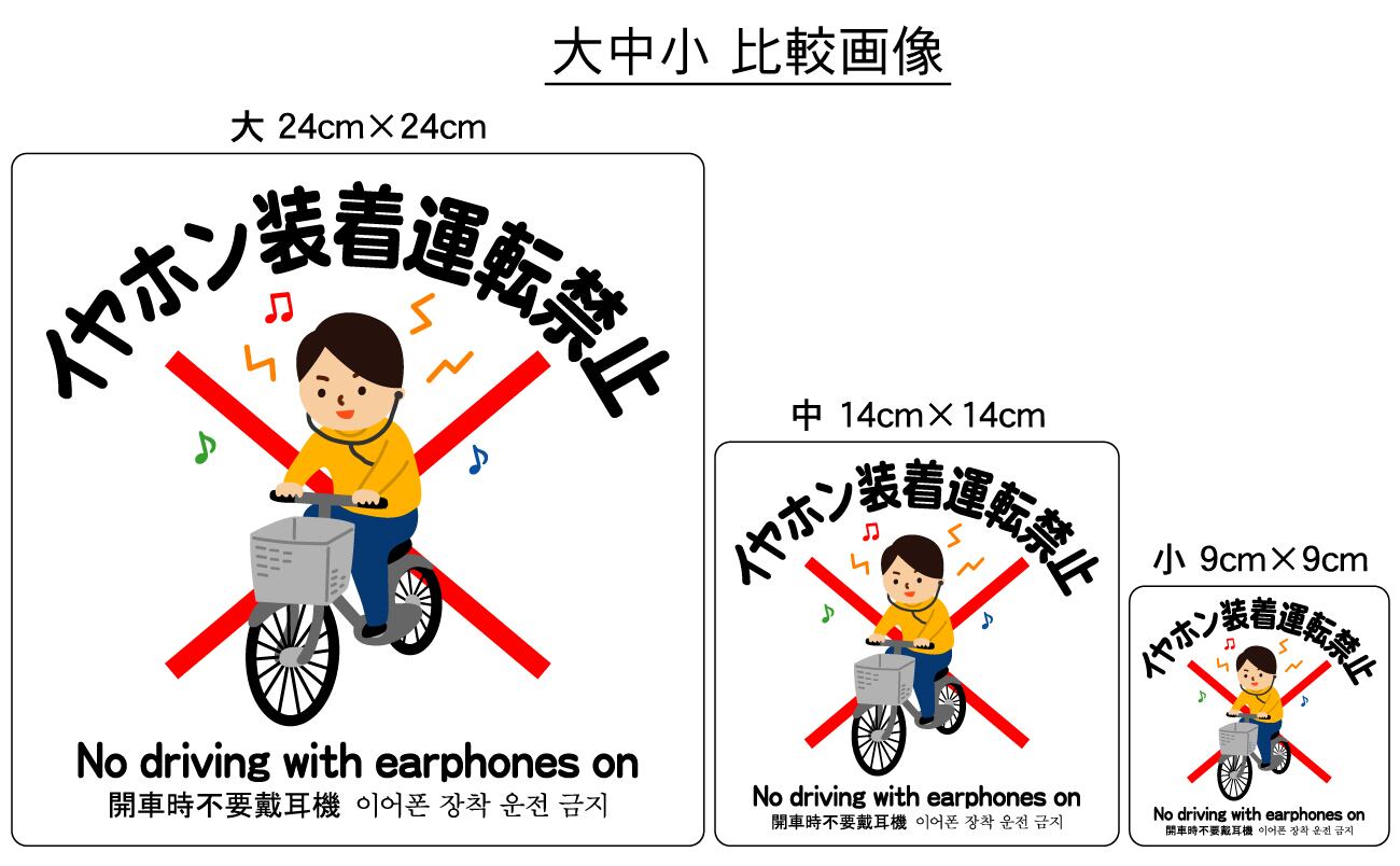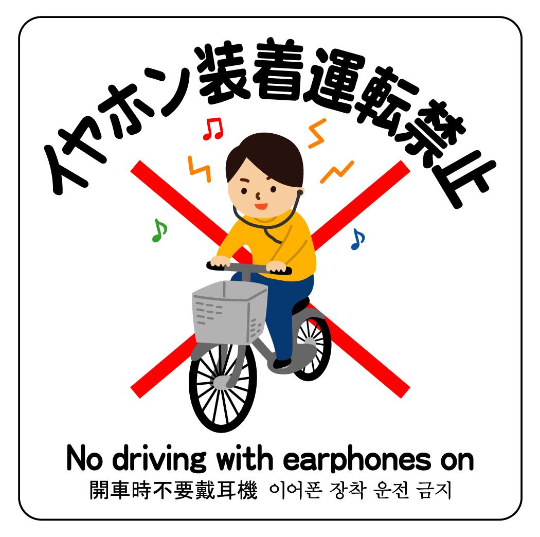 ステッカー・警告6・9×9cm・イヤホン運転禁止