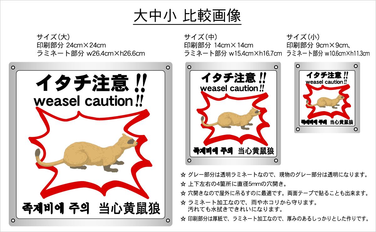 ボード・害獣・害虫・15.4×17cm・イタチ注意!!
