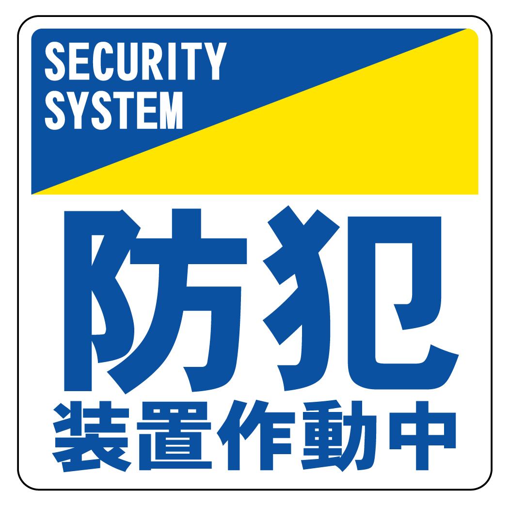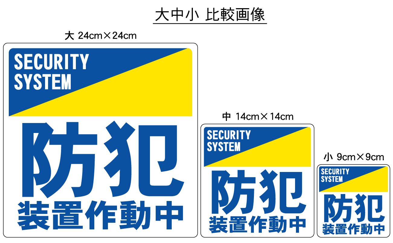 ステッカー・警告6・9×9cm・青黄 防犯装置