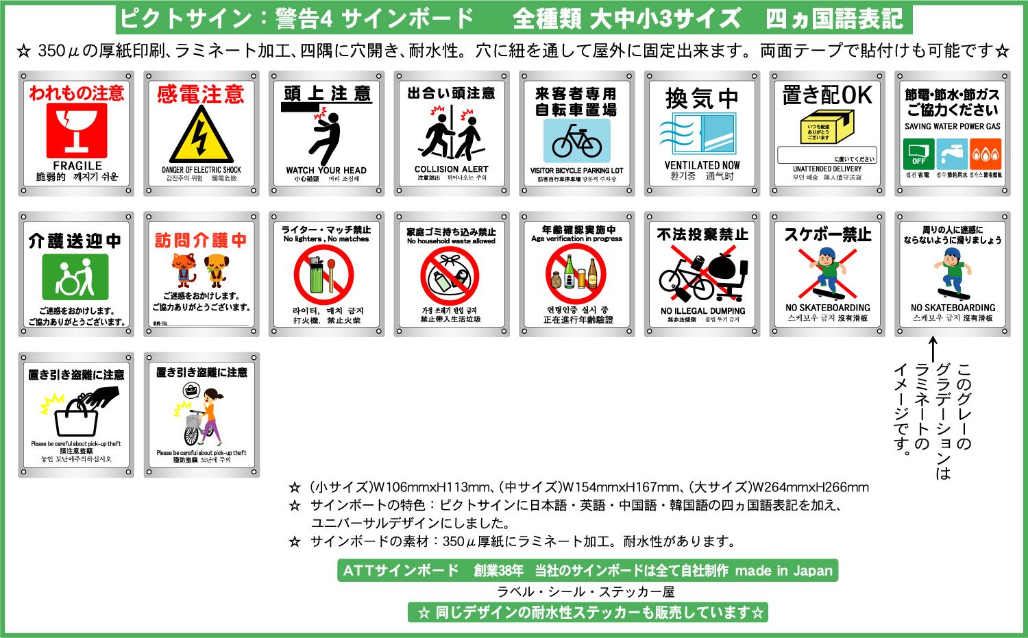 ステッカータイプ、ボードタイプ(防水 ラミネート加工)の2種類に、サイズは大、中、小の3種類がございます。