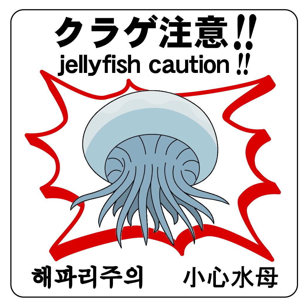ステッカー・害獣・害虫・14×14cm・クラゲ注意