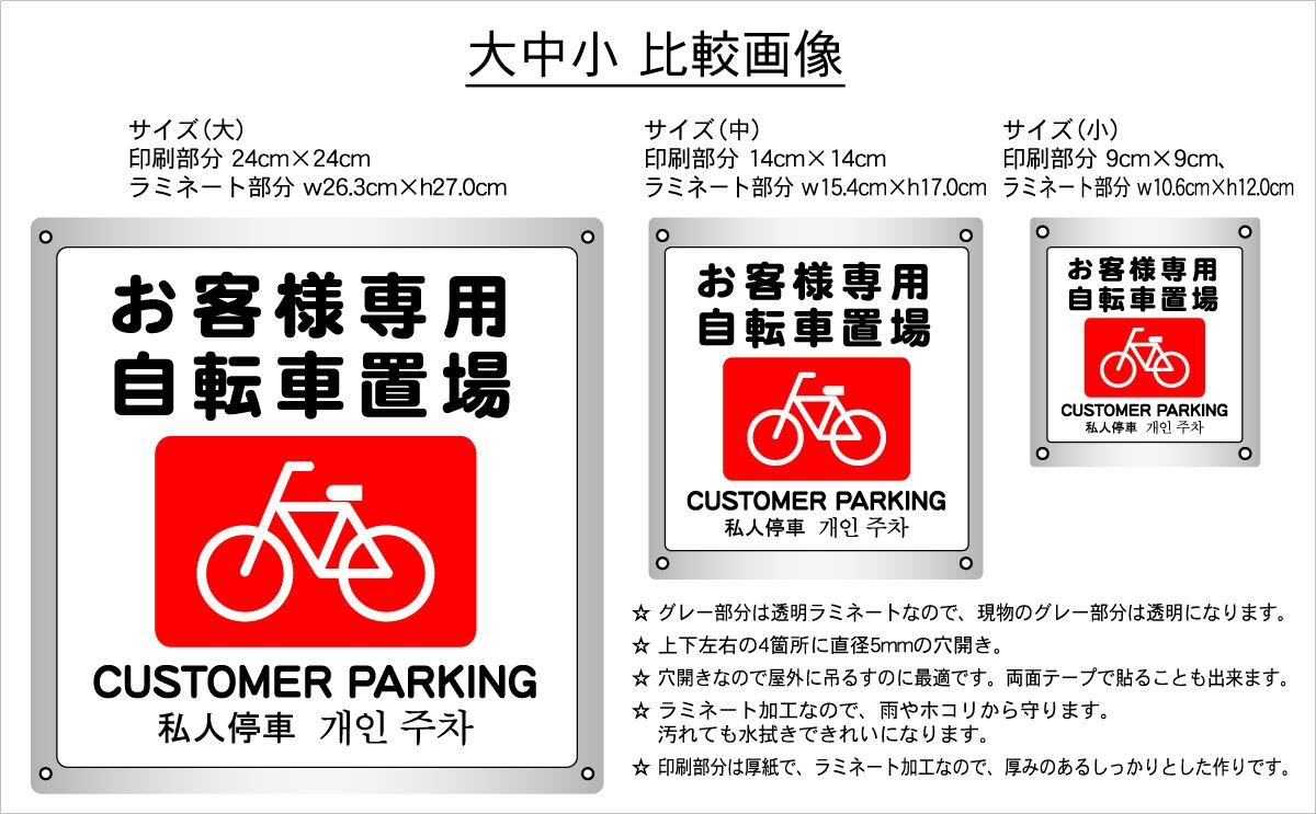 ボード・警告5・10.6×12cm・お客様専用自転車置場