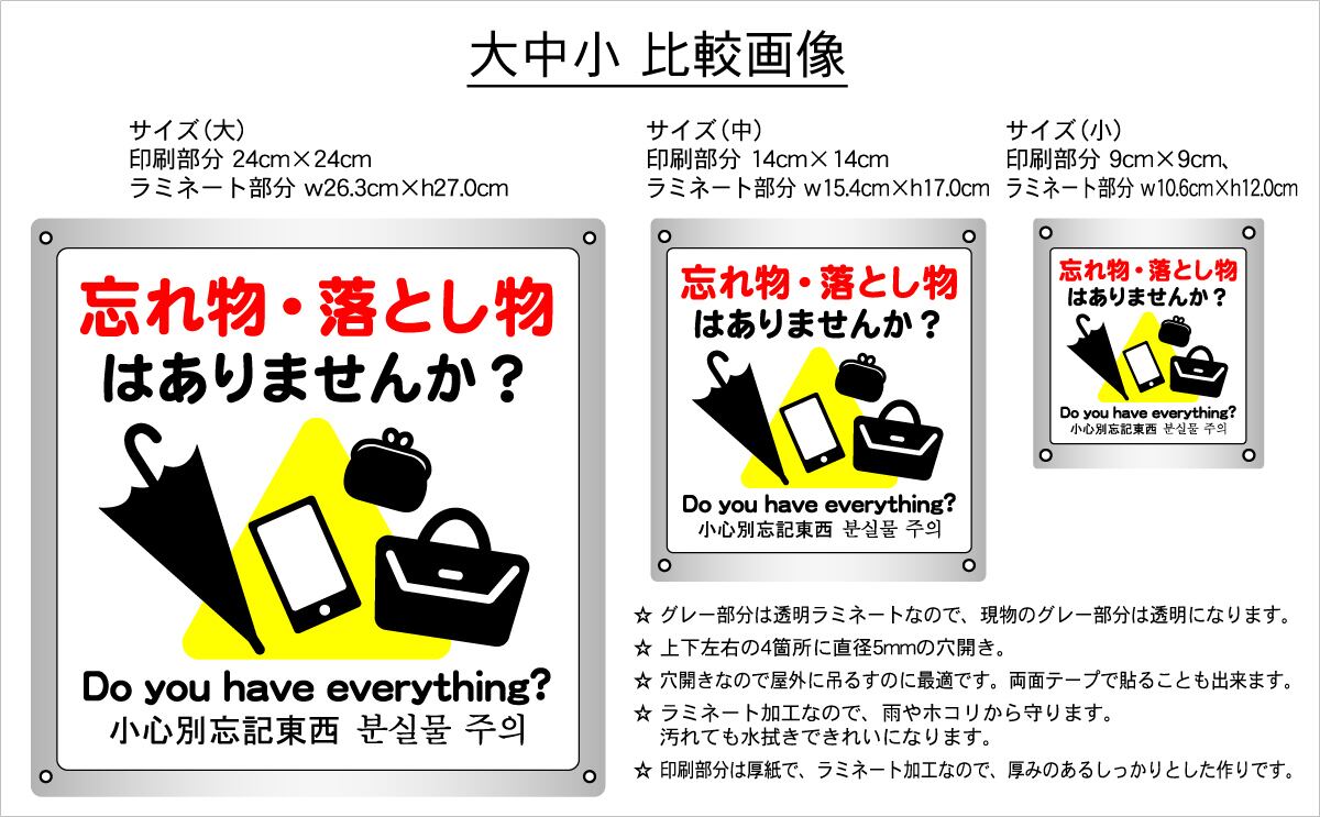 仕 様 :厚紙に印刷した物をラミネート(パウチ)加工しています。
