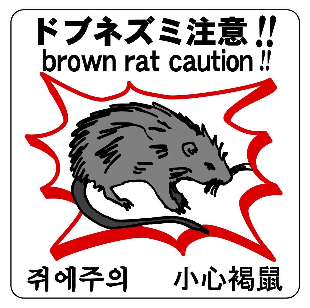 ステッカー・害獣・害虫・14×14cm・ドブネズミ注意