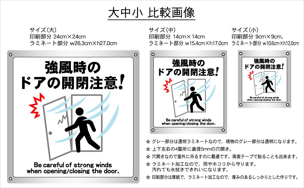 ボード・警告5・10.6×12cm・強風時のドアの開閉注意!