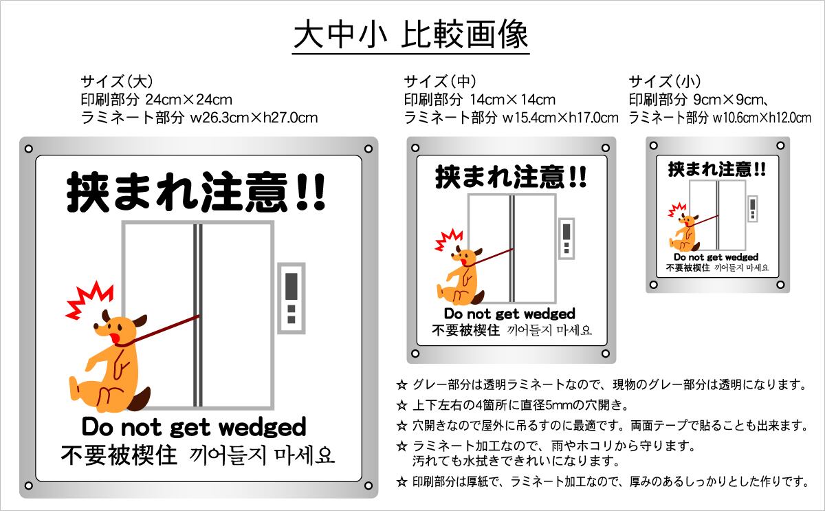 ステッカータイプ、ボードタイプ(防水 ラミネート加工)の2種類に、サイズは大、中、小の3種類がございます。