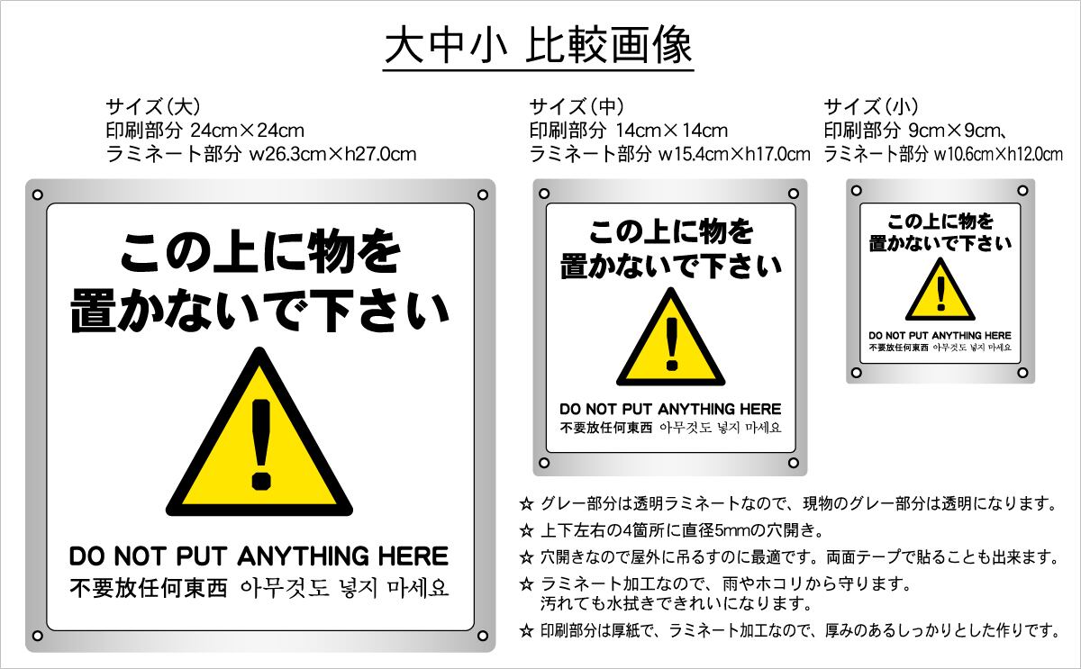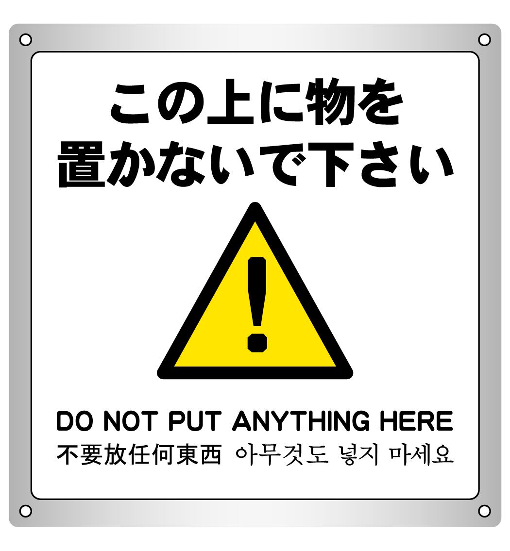 ボード・警告5・10.6×12cm・この上に物を置かないで下さい