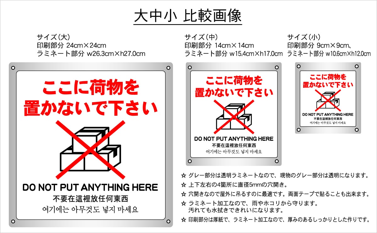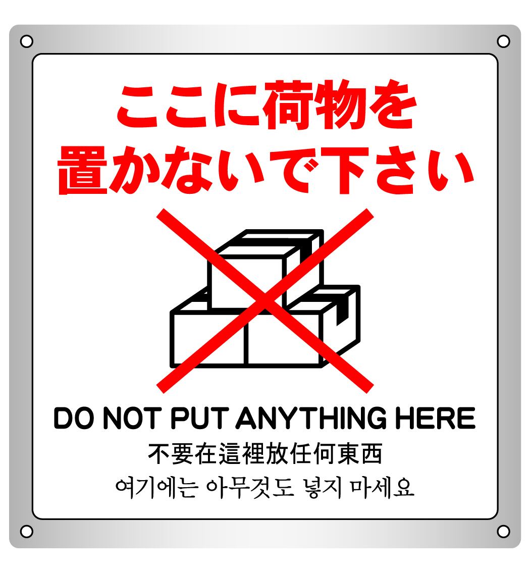 ボード・警告5・10.6×12cm・ここに荷物を置かないで下さい