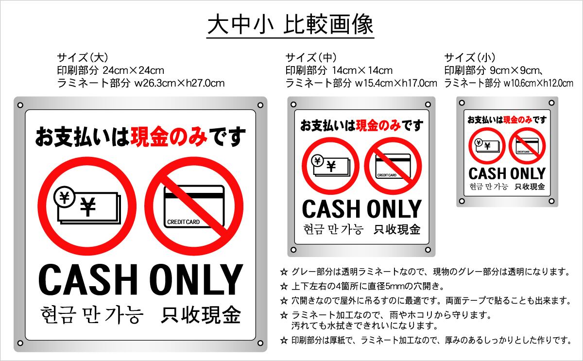 ボード・警告5・10.6×12cm・お支払いは現金のみです