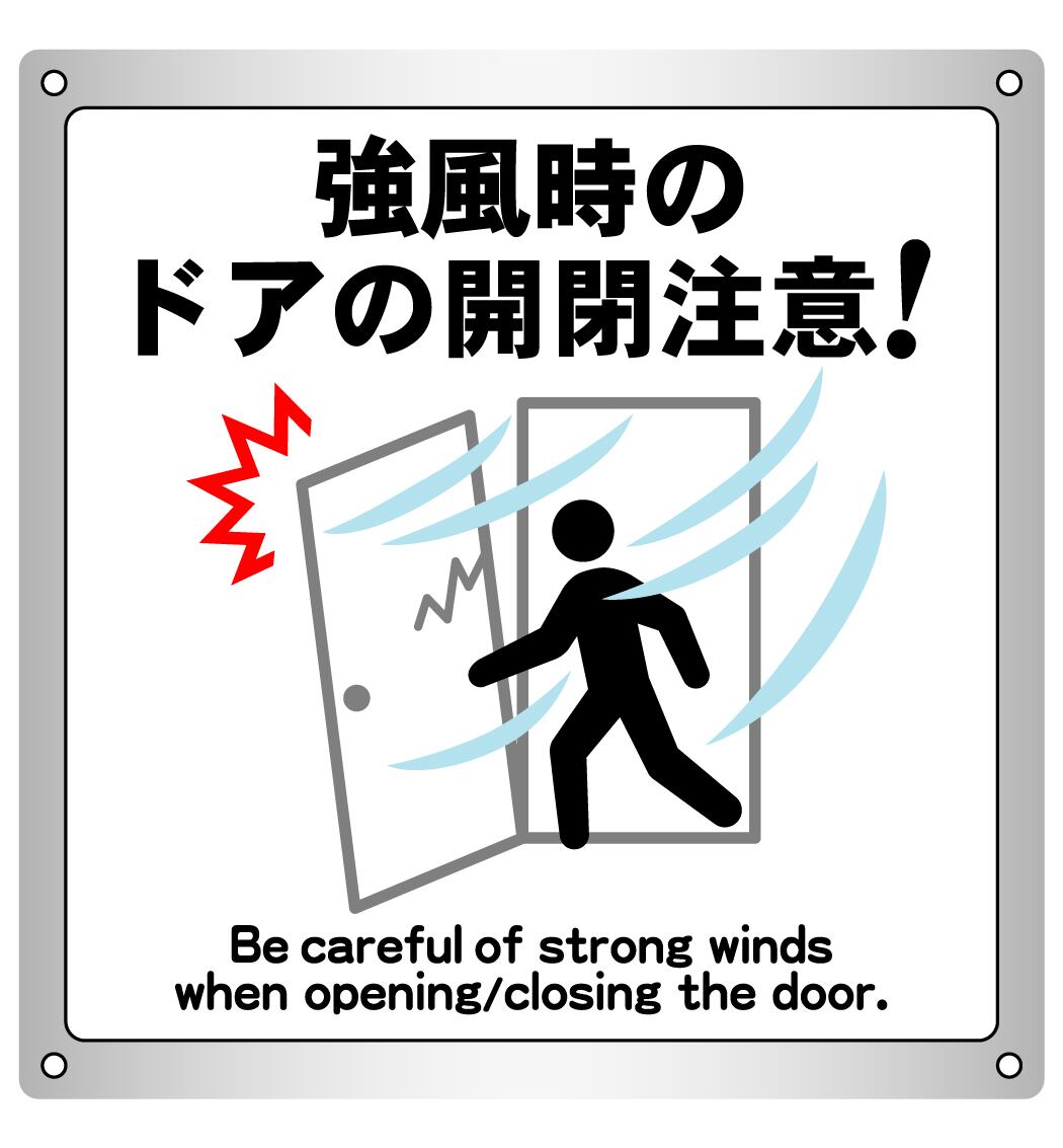 ボード・警告5・15.4×17cm・強風時のドアの開閉注意!