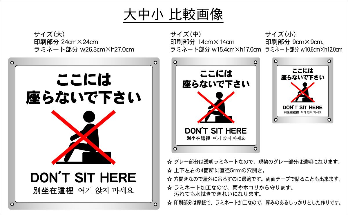 ボード・警告5・26.3×27cm・ここには座らないで下さい
