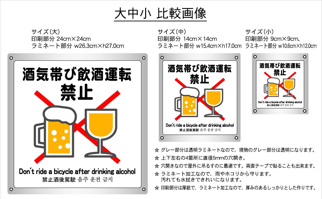 ボード・警告6・15.4×17cm・グラス飲酒運転禁止