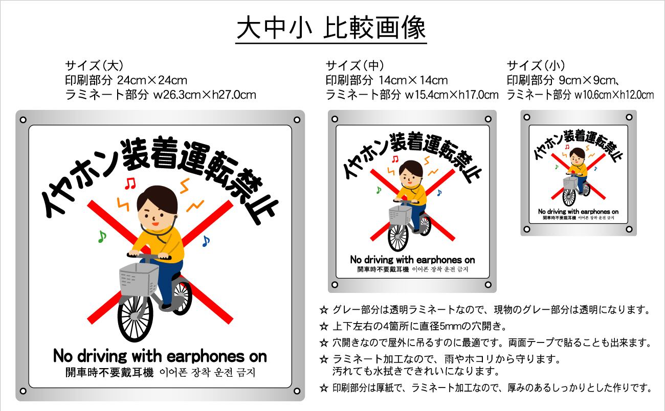 ボード・警告6・15.4×17cm・イヤホン運転禁止