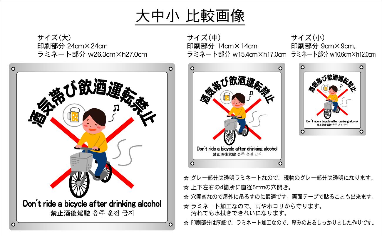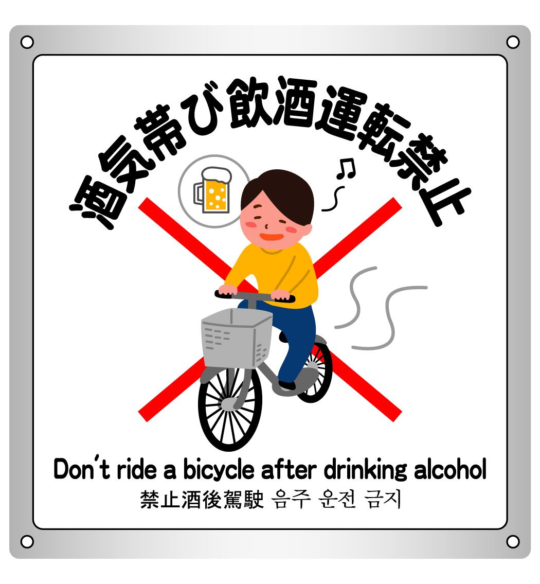 ボード・警告6・15.4×17cm・自転車飲酒運転禁止