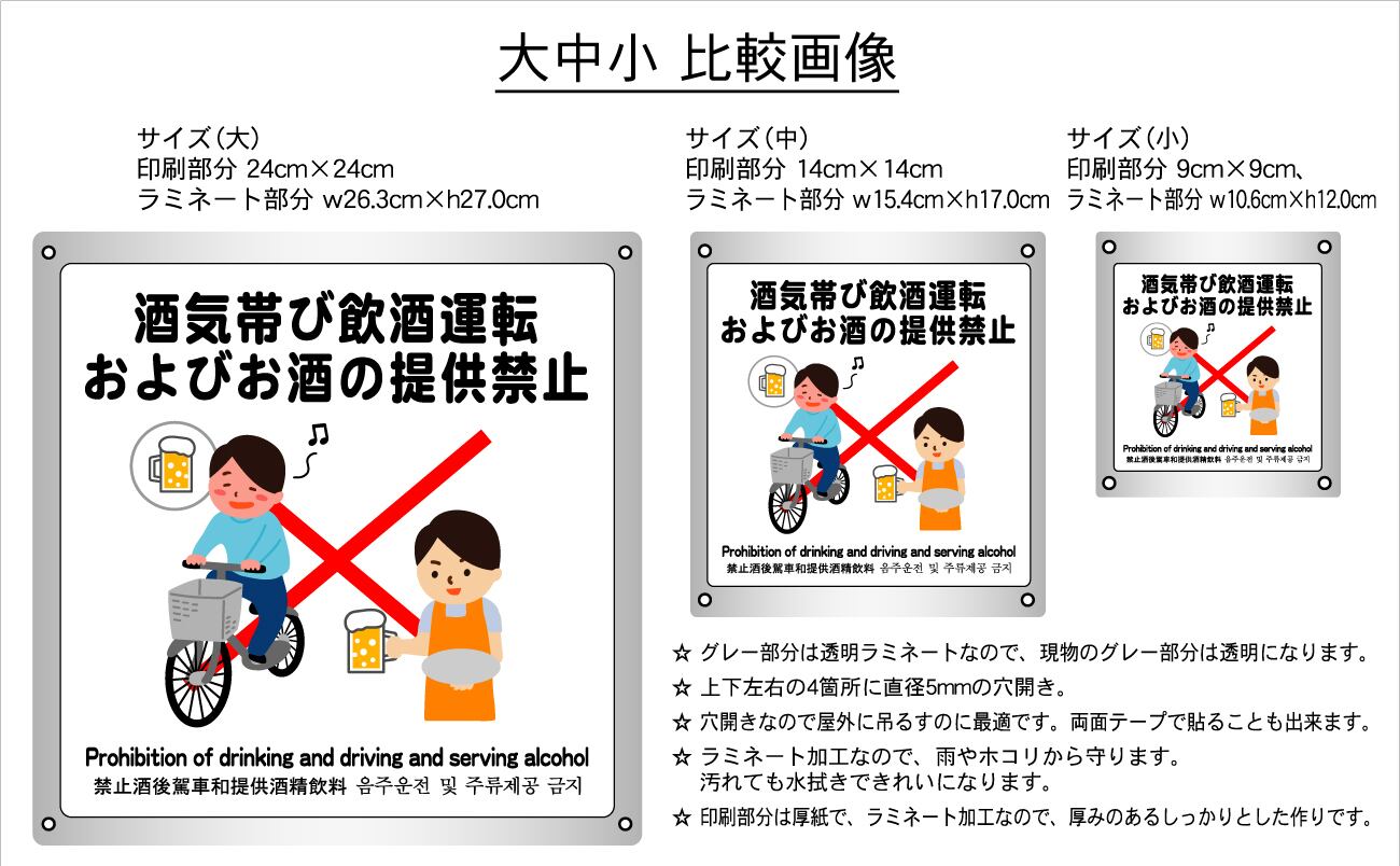 ボード・警告6・15.4×17cm・お酒の提供禁止