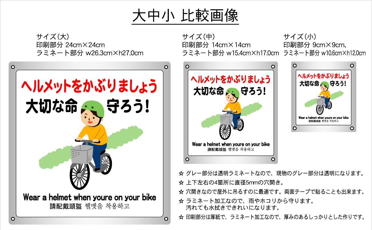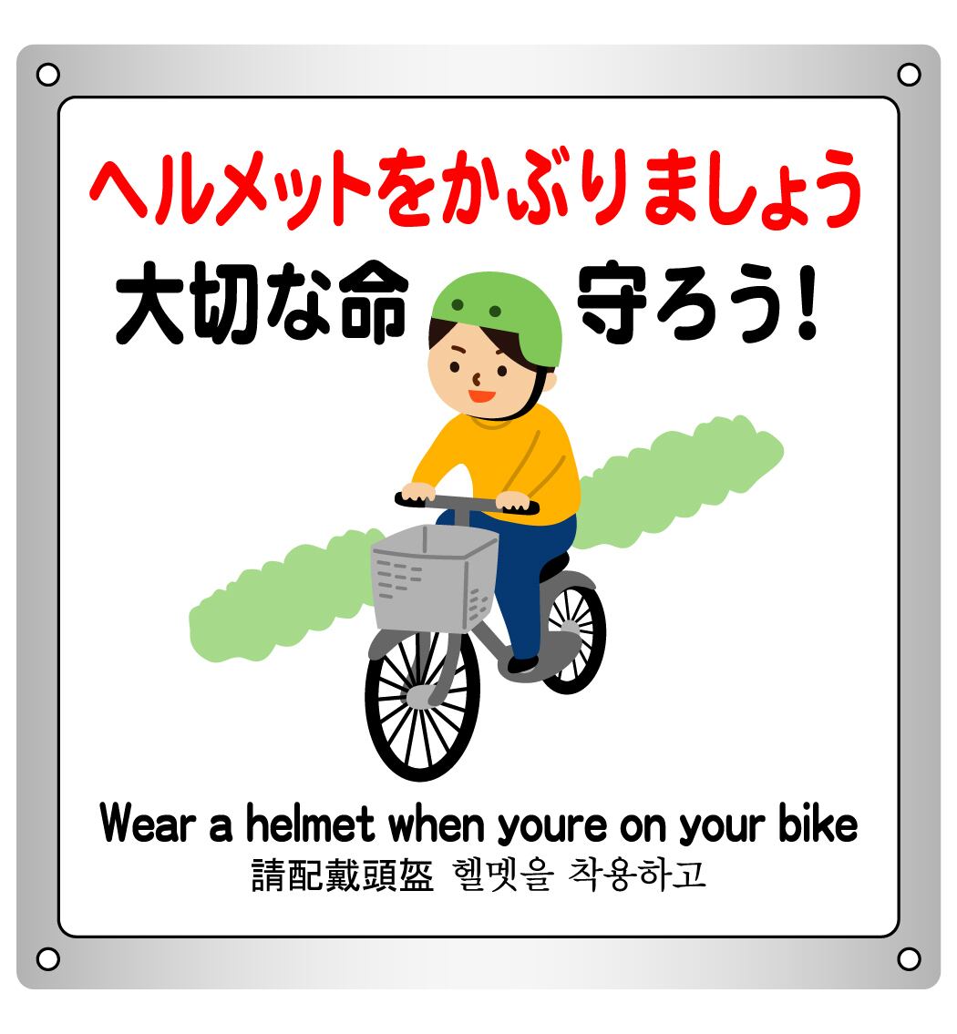 ボード・警告6・15.4×17cm・自転車ヘルメット大切