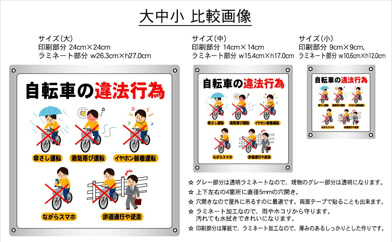ステッカータイプ、ボードタイプ(防水 ラミネート加工)の2種類に、サイズは大、中、小の3種類がございます。