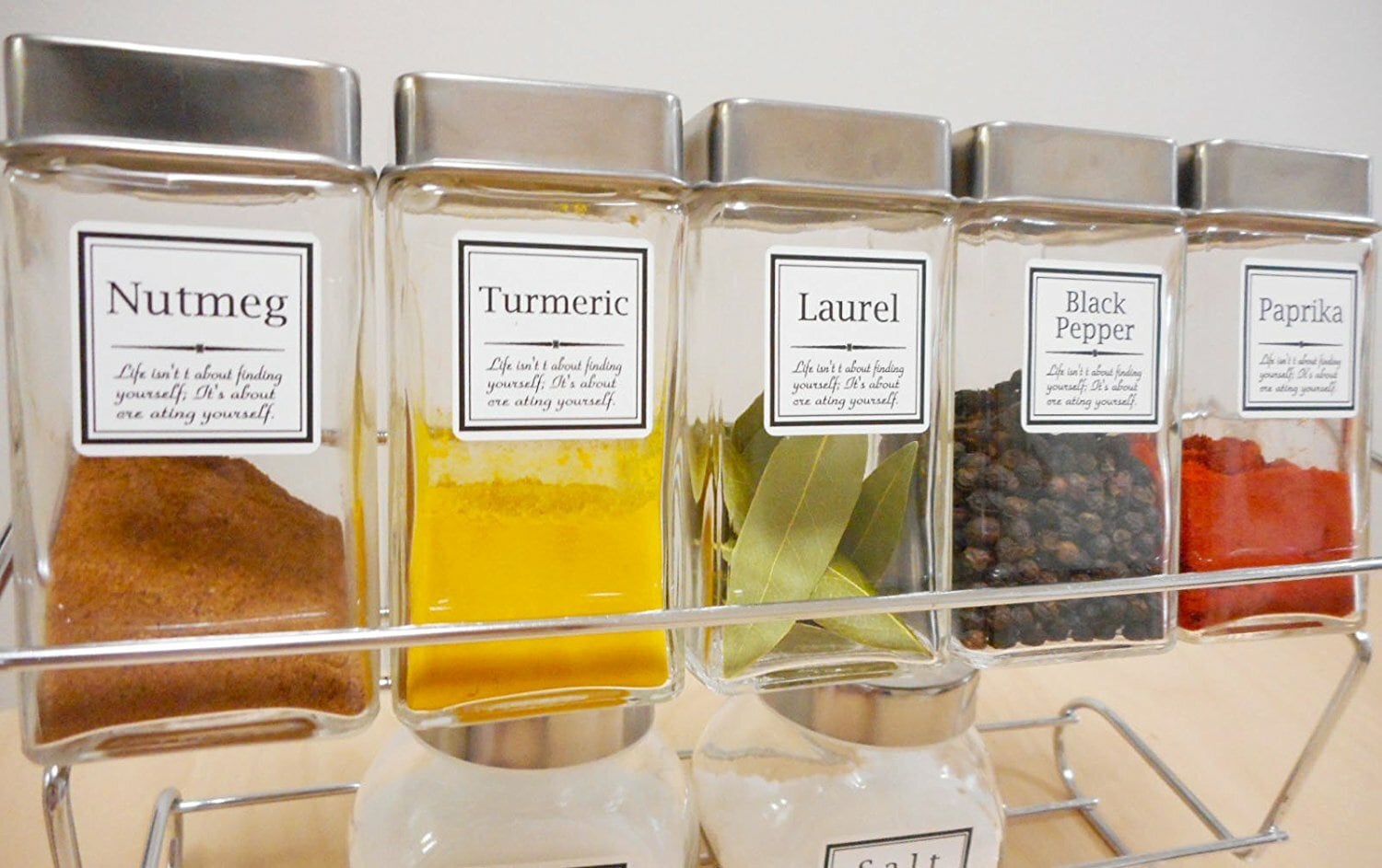 ラベル内容:バジル/パセリ/ローレル/ナツメグ/パプリカ/ローズマリー/サフラン/ターメリック/タイム/セージ/オレガノ/チリパウダー/ガラムマサラ/コリアンダー/クローブ/ブラックペッパー/一味/七味/鷹の爪/しょうが