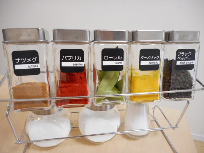 ・雑然としがちな調味料をすっきり整頓し、インテリアを統一できます。