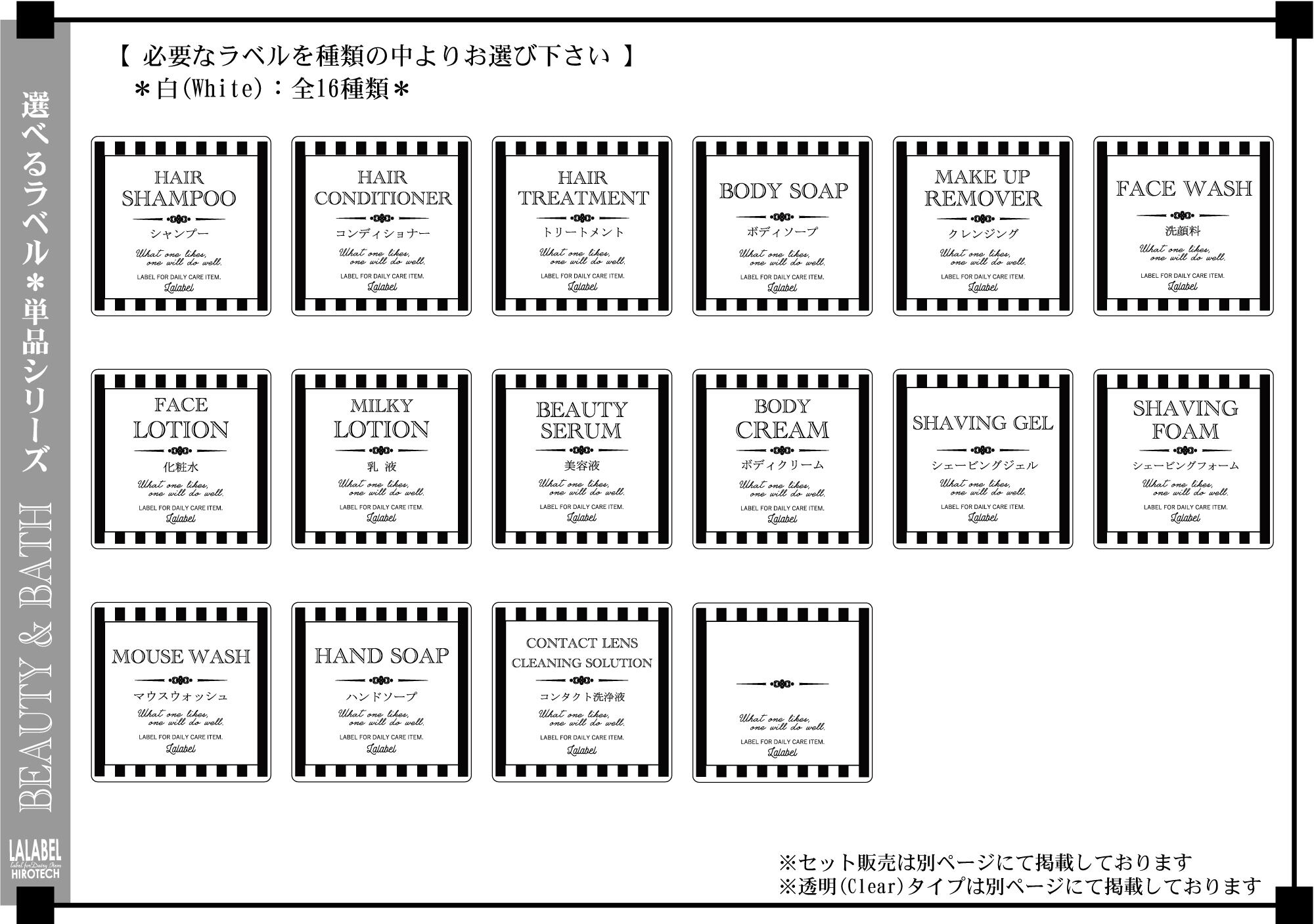 ラベル内容:シャンプー/コンディショナー/トリートメント/ボディソープ/クレンジング/洗顔料/化粧水/乳液/美容液/ボディクリーム/シェービングジェル/シェービングフォーム/マウスウォッシュ/ハンドソープ/コンタクト洗浄液/手書き用フリー