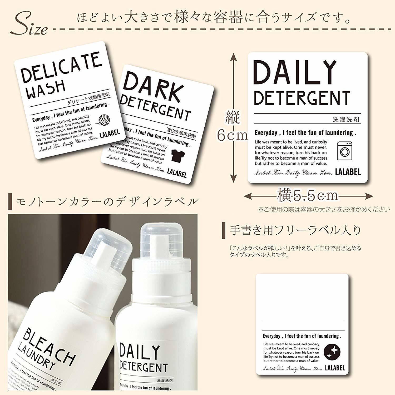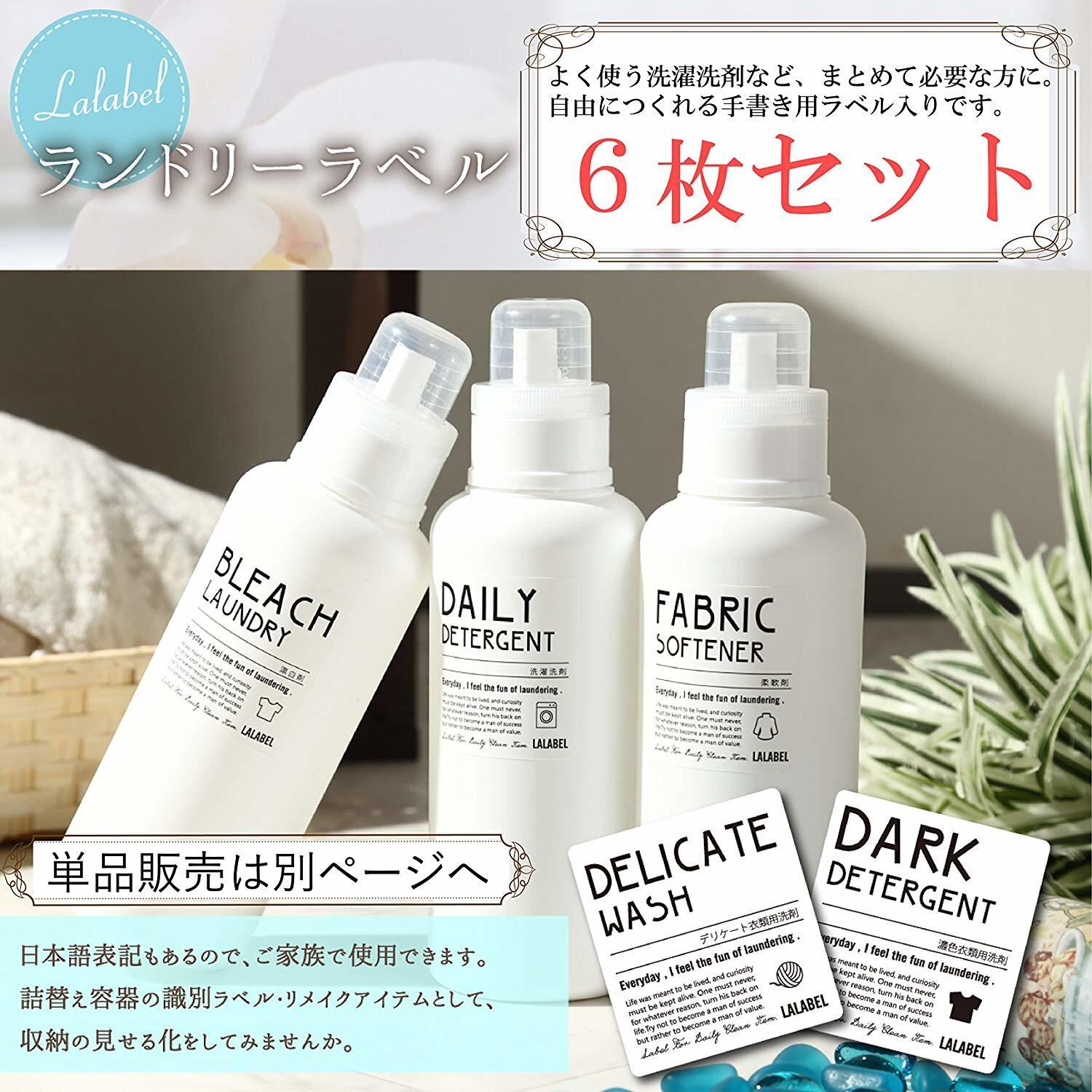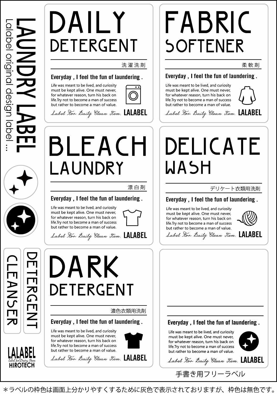 ラベル内容:洗濯洗剤/漂白剤/濃色衣類用洗剤/柔軟剤/デリケート衣類用洗剤/フリーラベル