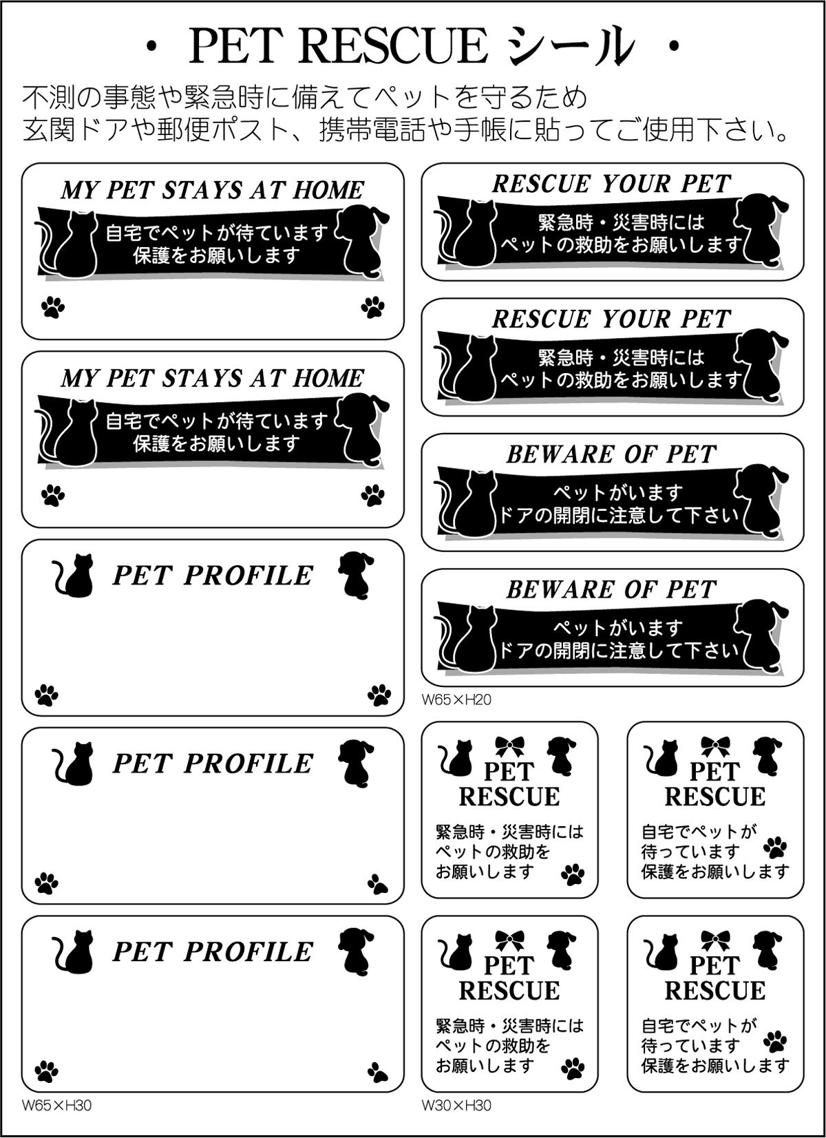 ・不測の事態に備えて、玄関ドア・郵便ポスト・携帯電話・手帳等に貼っておけば、ペットがそこにいることを誰かに認知してもらえます。