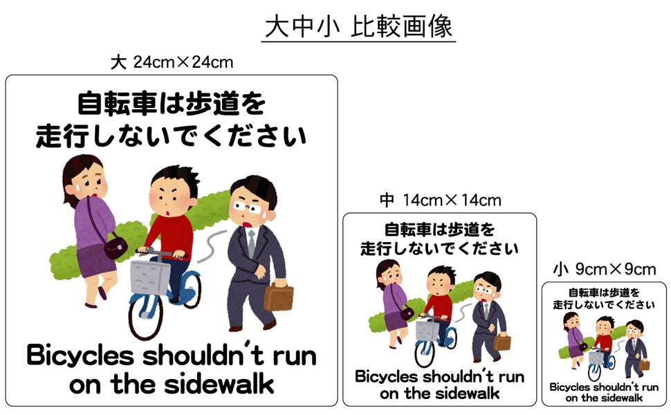 ステッカータイプ、ボードタイプ(防水 ラミネート加工)の2種類に、サイズは大、中、小の3種類がございます。