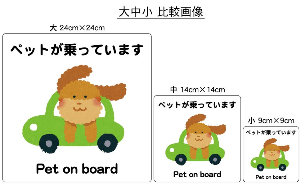ステッカータイプ、ボードタイプ(防水 ラミネート加工)の2種類に、サイズは大、中、小の3種類がございます。