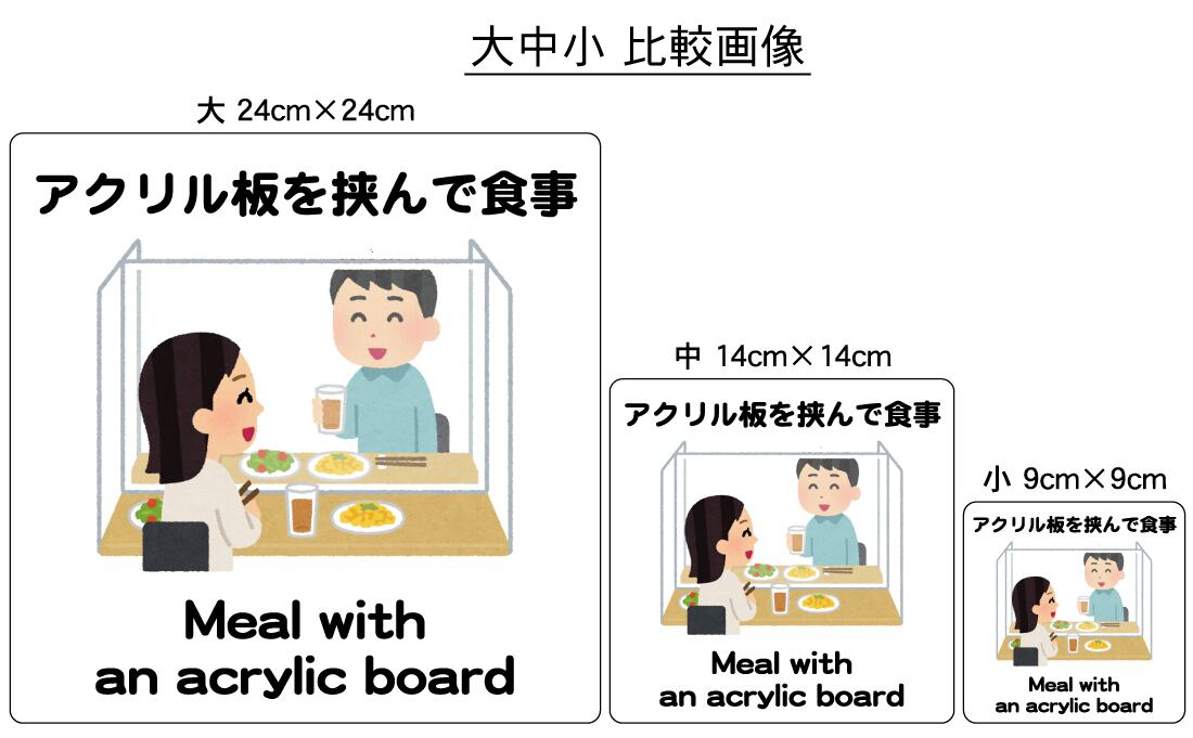 ステッカー・警告3・9×9cm・アクリル板を挟んで食事