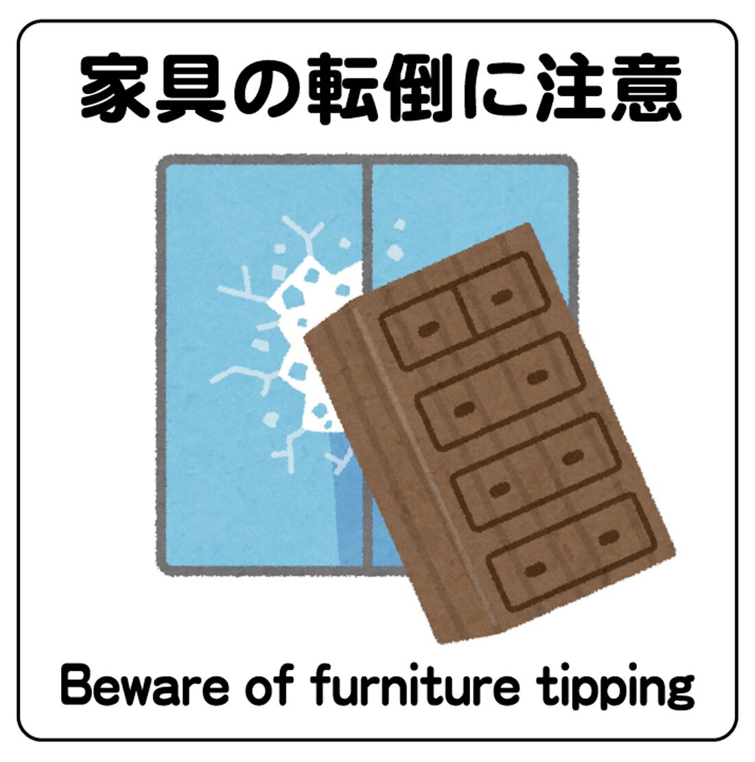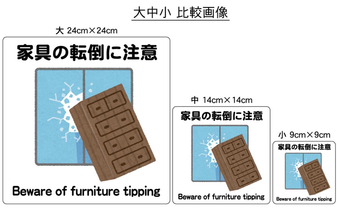 ステッカー・警告3・9×9cm・家具の転倒に注意