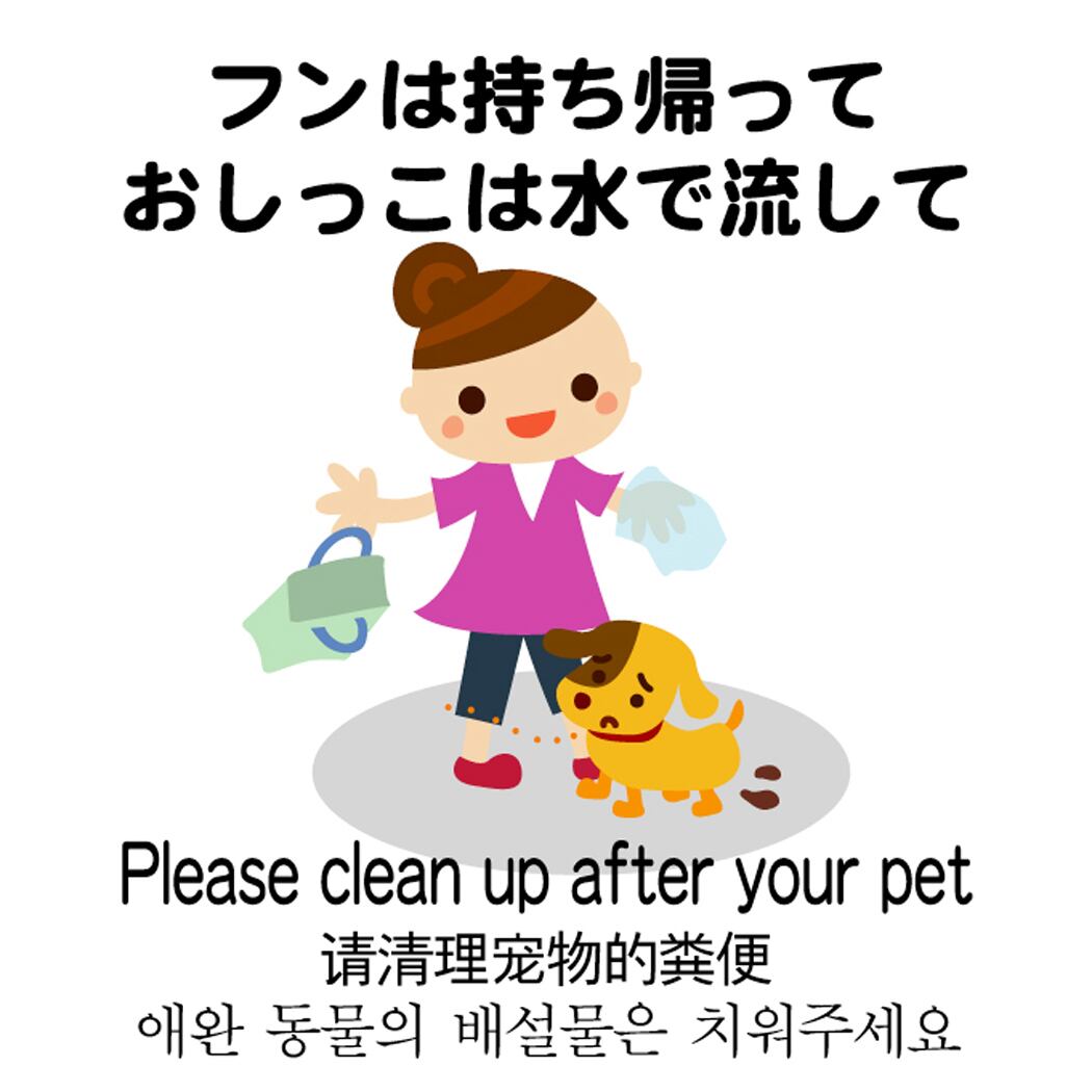 ステッカー・ペット・9×9cm・フンは持ち帰っておしっこは水で流して(4ヶ国語)
