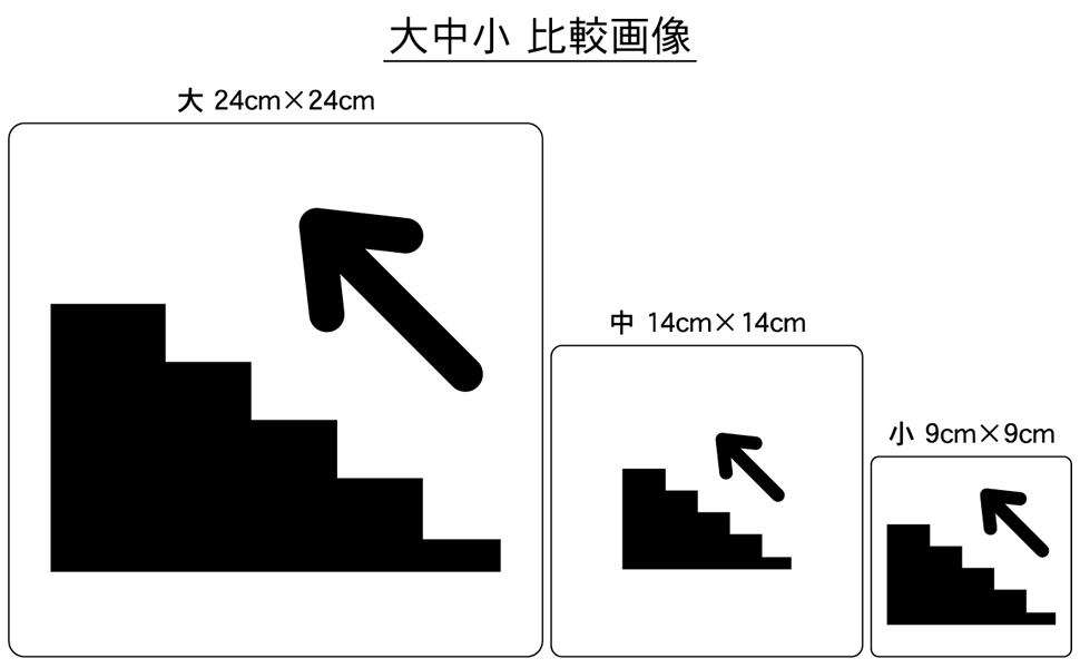 ステッカータイプ、ボードタイプ(防水 ラミネート加工)の2種類に、サイズは大、中、小の3種類がございます。