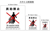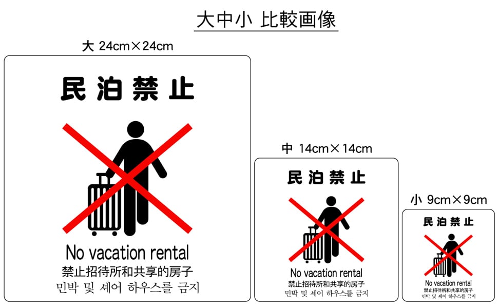 ステッカータイプ、ボードタイプ(防水 ラミネート加工)の2種類に、サイズは大、中、小の3種類がございます。