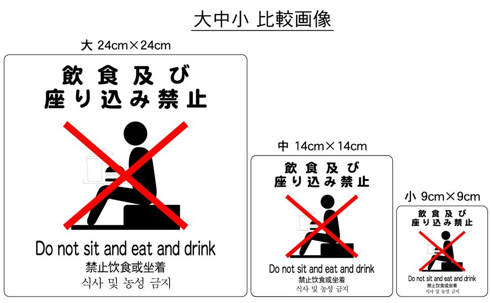ステッカー・警告2・14×14cm・飲食及び座り込み禁止