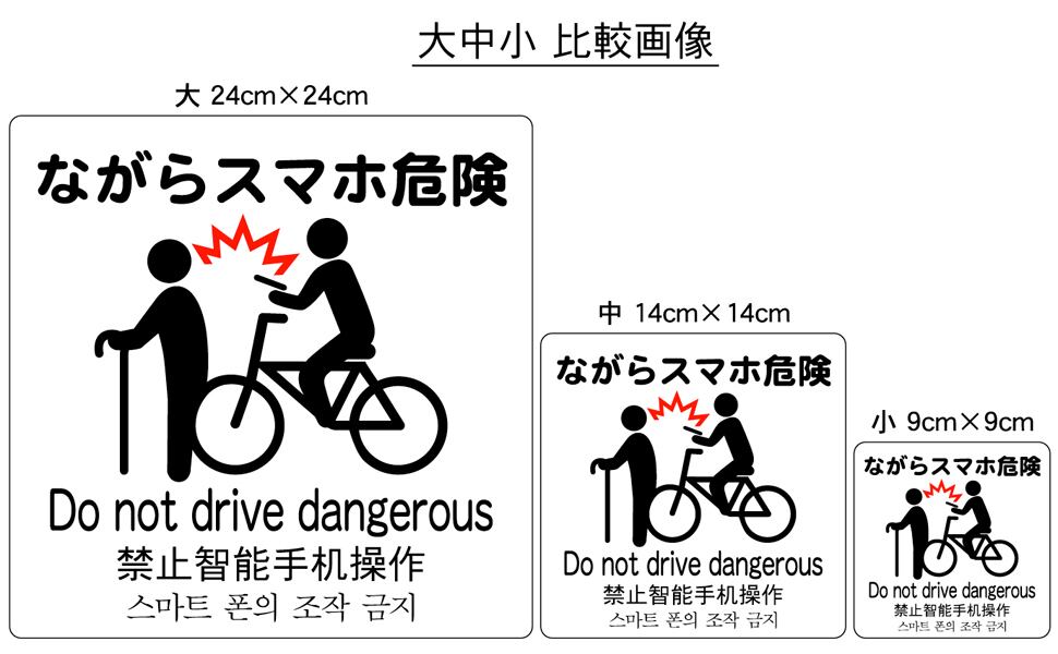 ステッカー・警告2・14×14cm・ながらスマホ危険