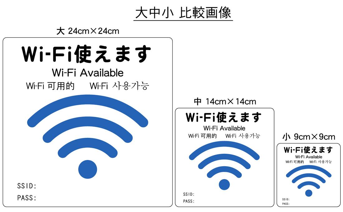 ステッカータイプ、ボードタイプ(防水 ラミネート加工)の2種類に、サイズは大、中、小の3種類がございます。