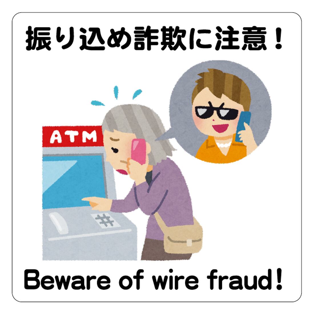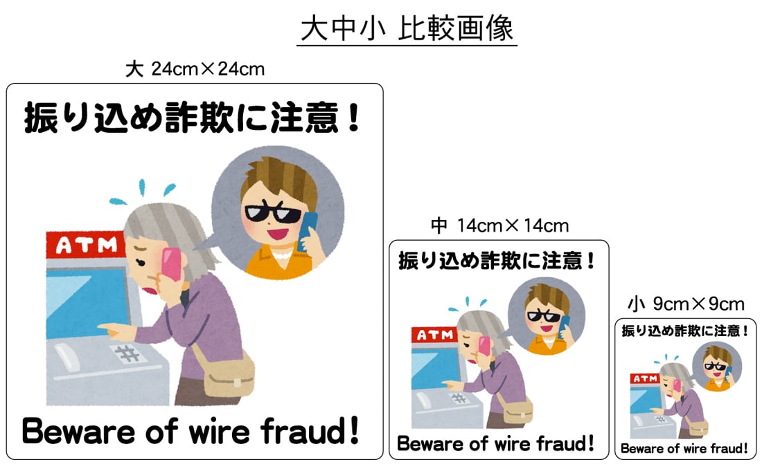 ステッカー・警告3・14×14cm・振り込め詐欺に注意!