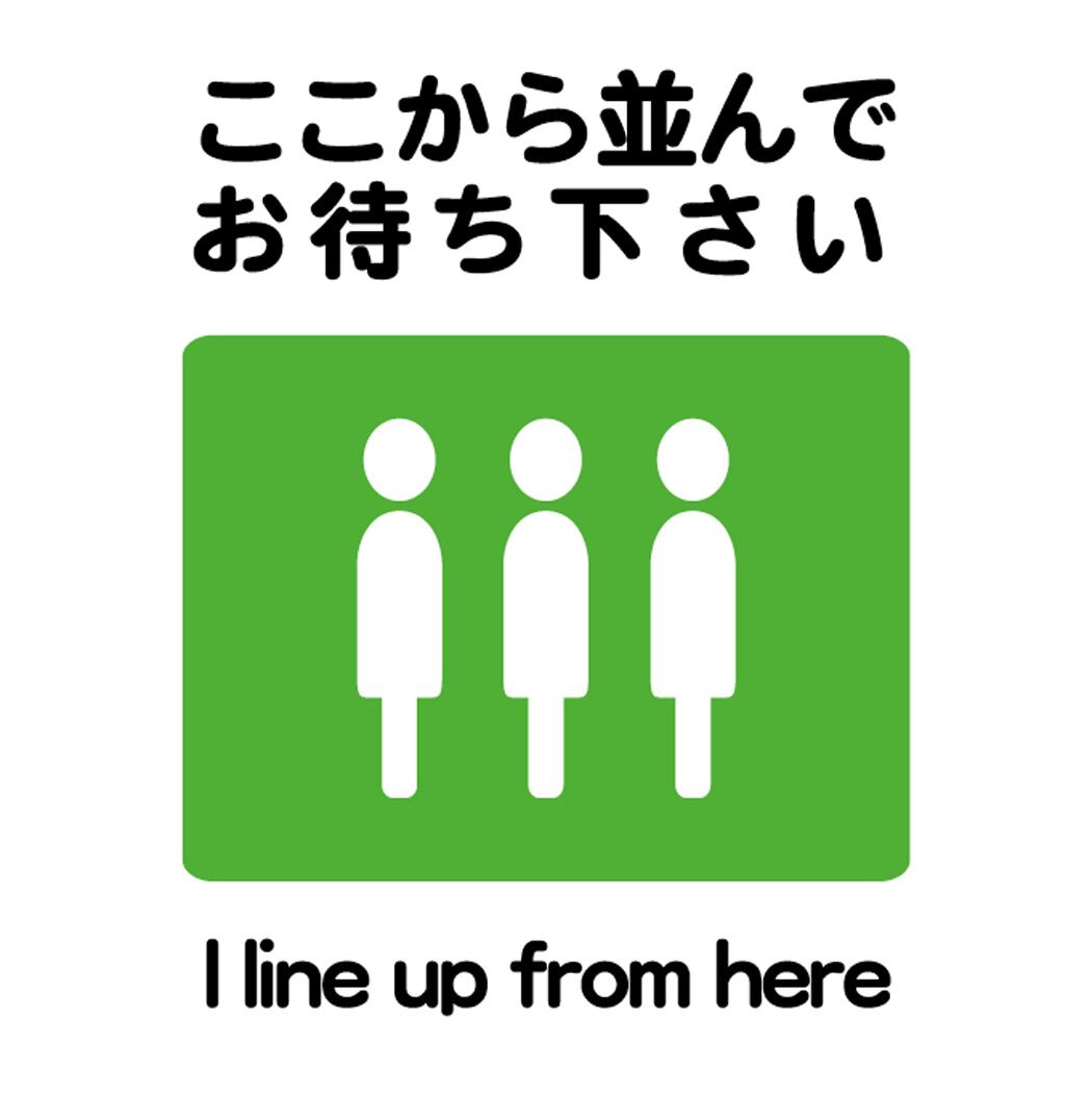 ステッカー・トイレ・14×14cm・ここから並んでお待ち下さい