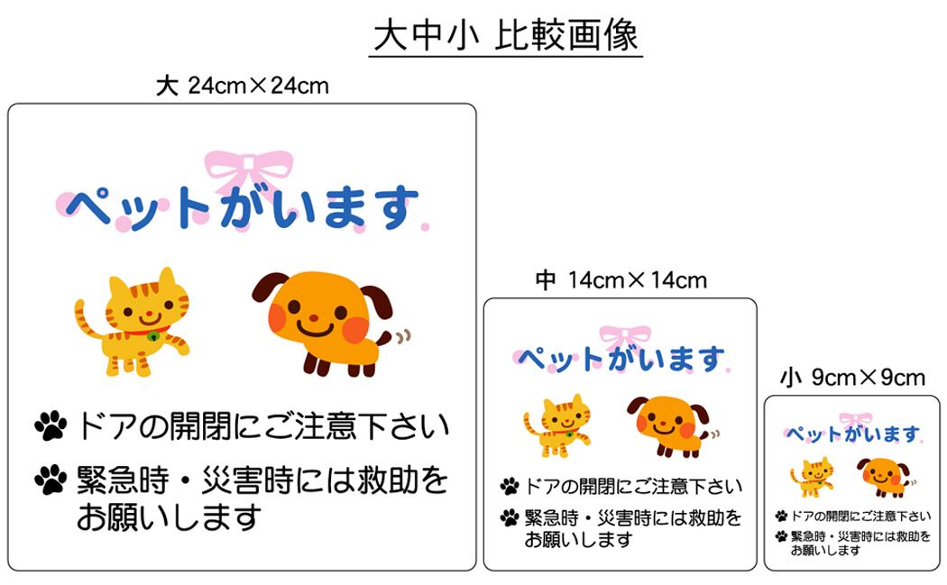 ステッカータイプ、ボードタイプ(防水 ラミネート加工)の2種類に、サイズは大、中、小の3種類がございます。