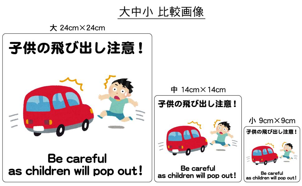 ステッカータイプ、ボードタイプ(防水 ラミネート加工)の2種類に、サイズは大、中、小の3種類がございます。