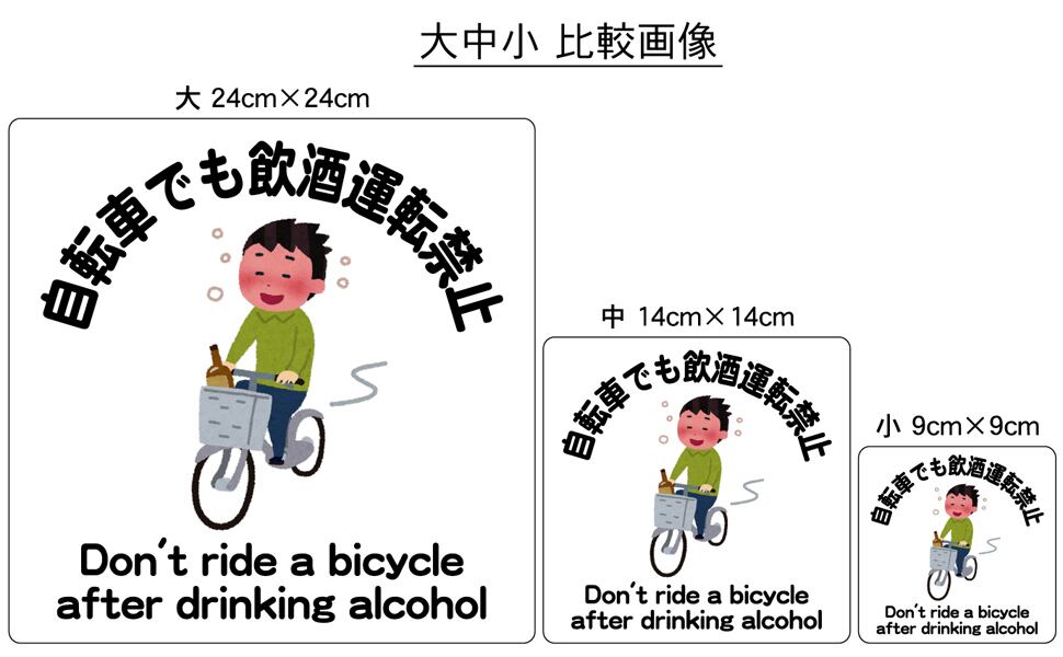 ステッカー・警告2・24×24cm・自転車でも飲酒運転禁止