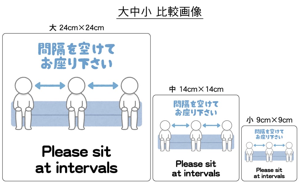 ステッカー・警告3・24×24cm・間隔を空けてお座り下さい