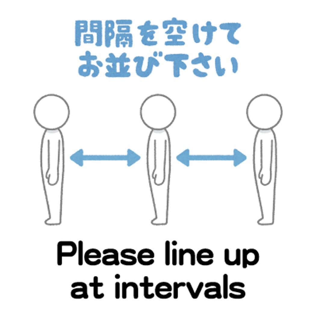ステッカー・警告3・24×24cm・間隔を空けてお並び下さい