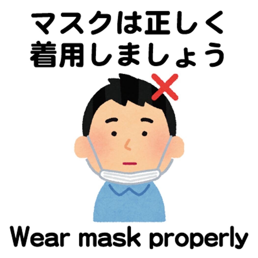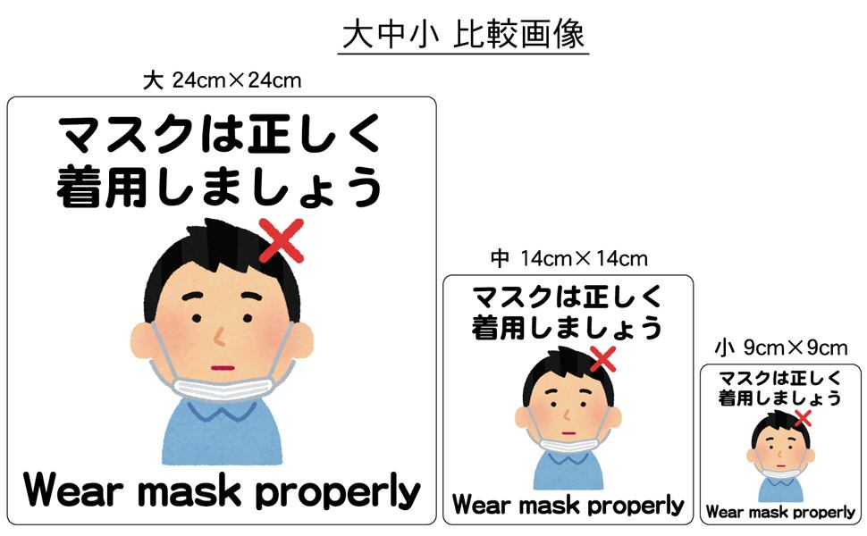 ステッカー・警告3・24×24cm・マスクは正しく着用しましょう