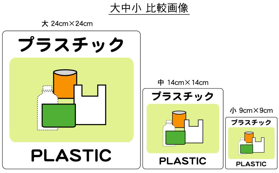 ステッカータイプ、ボードタイプ(防水 ラミネート加工)の2種類に、サイズは大、中、小の3種類がございます。