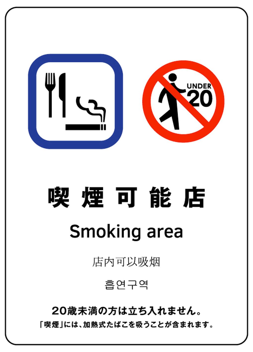 厚生労働省指定、受動喫煙に対応したステッカーです。