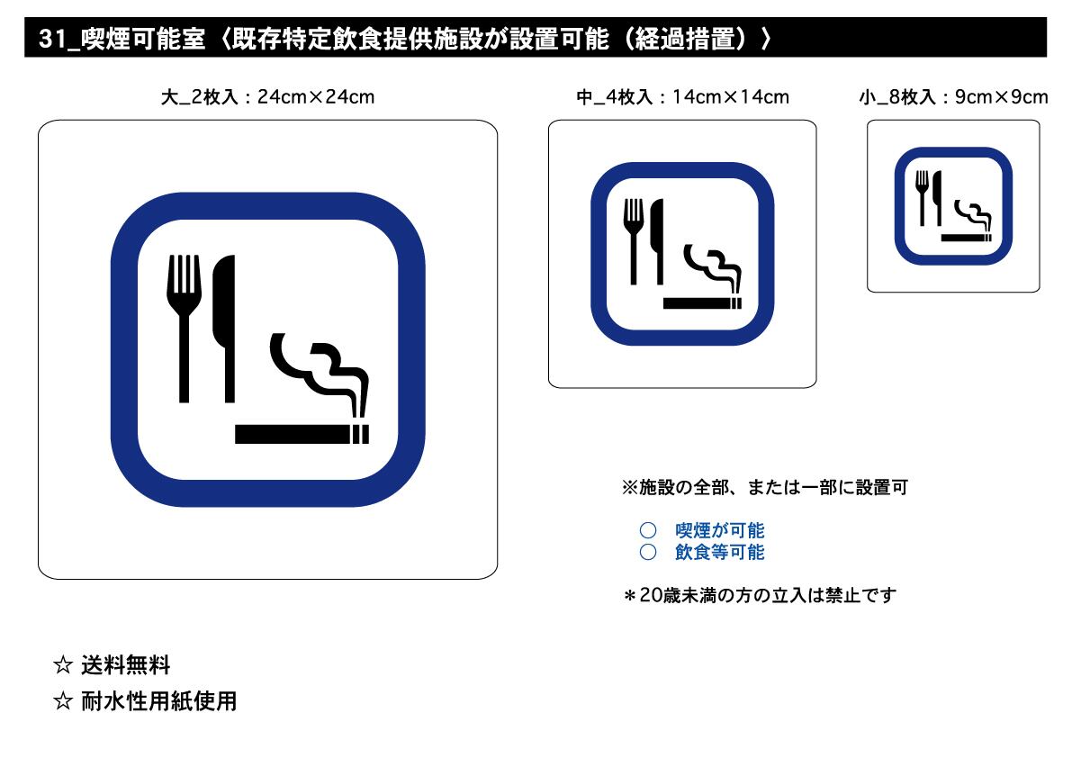 厚労省指定 分煙ステッカー・中 4枚入れ・№31 喫煙可能室